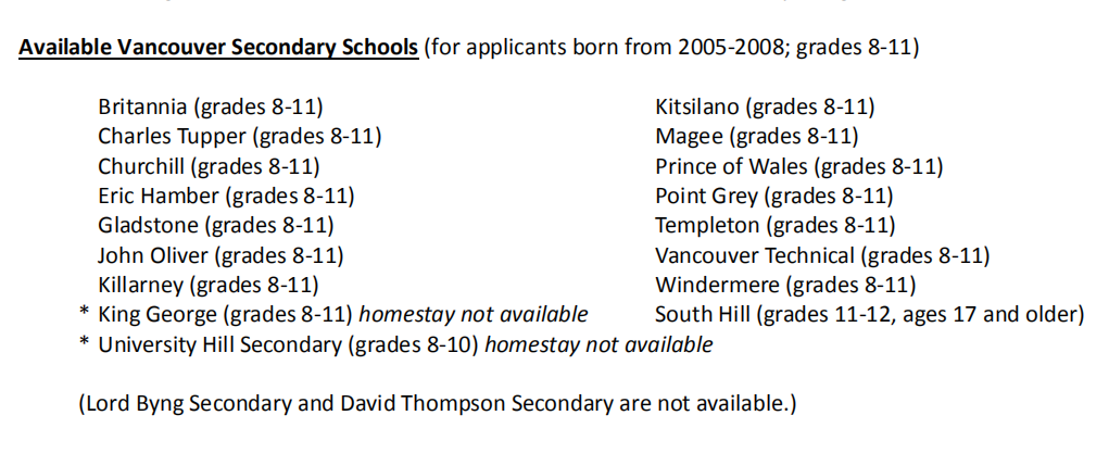 溫哥華教育局2021年9月入學(xué)位置清單: