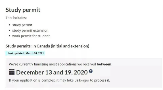 IRCC目前正在最后審理2020年12月13日至12月19日之間收到的大部分學簽申請,包括申請新的學簽、延長學簽和學生實習工簽。如果是復雜的申請,可能需要更長的時間來處理。
