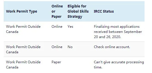 如果申請者是在加拿大境外提交的工簽申請且屬于“全球技術戰(zhàn)略”(Eligible for Global Skills Strategy)引進人才,請注意:移民局差不多處理到2020年9月20日至26日之間的案件。