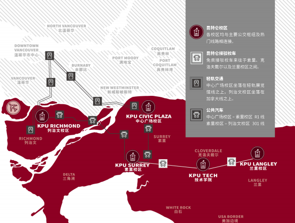 ※位于加拿大BC省大溫地區(qū)(Greater Vancouver Area)擁有五大校區(qū)