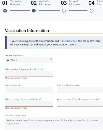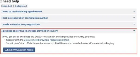 點(diǎn)擊“I got dose one or two in another province or country”(我在其他省份或國家接種了一針或兩針疫苗)