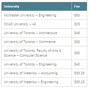 通過OUAC申請(qǐng)的費(fèi)用,101分為基本申請(qǐng)費(fèi)、額外申請(qǐng)費(fèi)、國(guó)際服務(wù)費(fèi)、額外專業(yè)費(fèi)這幾項(xiàng),105在前述基礎(chǔ)上還要加上成績(jī)單費(fèi)、額外文件評(píng)估費(fèi)等。