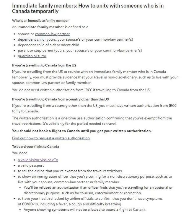 對于已經(jīng)擁有訪問簽證符合申請條件者,如果你沒有達(dá)到加拿大要求的完全接種過疫苗的旅客豁免標(biāo)準(zhǔn),如果你要和一個大家庭成員、與在加拿大以非居民身份的直系親屬從美國以外的任何國家旅行,注意:如果你從美國與加拿大非居民的直系親屬團(tuán)聚,你不需要書面授權(quán)。