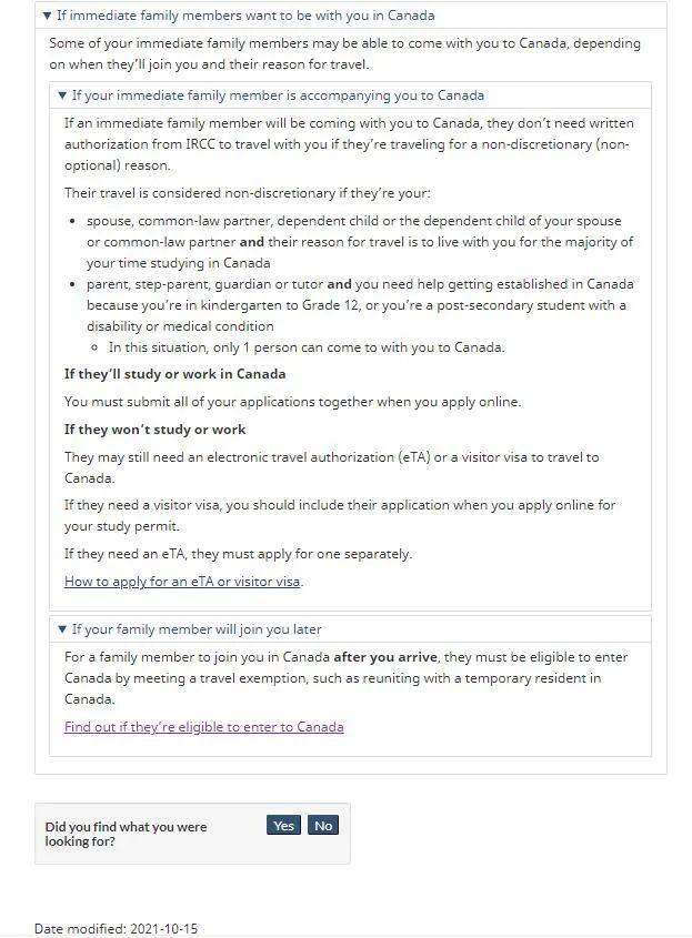 ——配偶、同居伴侶、受撫養(yǎng)子女或配偶或同居伴侶的受撫養(yǎng)子女,他們旅行的原因是在你在加拿大學(xué)習(xí)的大部分時(shí)間里與你生活在一起;