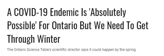 安大略省新冠科學(xué)咨詢委員會的科學(xué)主任Peter Juni博士11月15日對Narcity表示,他“相信到2022年春季,新冠疫情會從‘大流行疾病’(Pandemic)變成‘地方性流行疾病’(endemic)”。