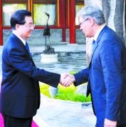 大猶長(zhǎng)約翰(右)曾經(jīng)兩會(huì)胡錦濤。