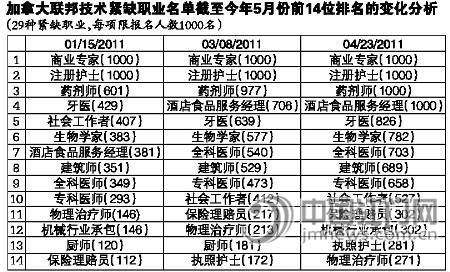 加拿大技術移民職業(yè)清單有變。據加拿大官網數據顯示,2011年7月加拿大技術移民職業(yè)清單將會發(fā)生較大的變化。目前,商業(yè)專家、注冊護士、藥劑師、酒店食品服務經理等申請人數均已達1000人,現已停止接受申請,預計這4種職業(yè)將從7月的加拿大技術移民緊缺職業(yè)名單中刪去。