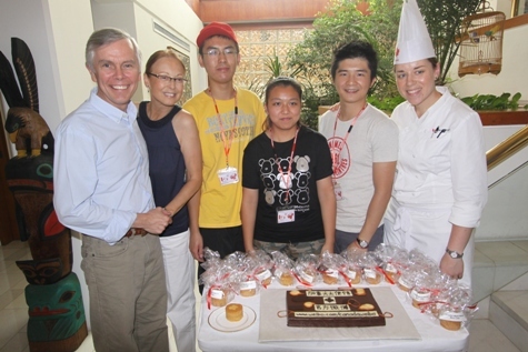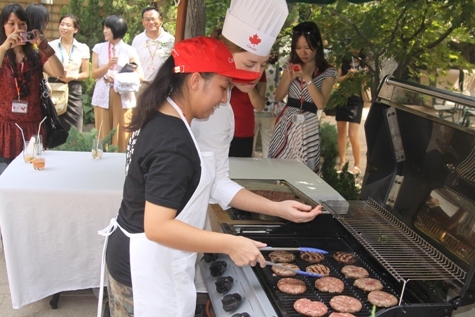 之后,大使又帶大家參觀了使館俱樂部,介紹加拿大的冰球傳統(tǒng)。緊接著,大家來(lái)到貿(mào)易處,貿(mào)易處的官員們?yōu)榇蠹易隽?a href='http://m.wuaimall.cn' target='_blank'>留學(xué)加拿大及加拿大旅游勝地的介紹,展示非常精彩,以至于在場(chǎng)的加拿大人都產(chǎn)生了立刻回家的沖動(dòng)。講解使大家無(wú)比振奮,但大使也不會(huì)虧待了大家的肚子。