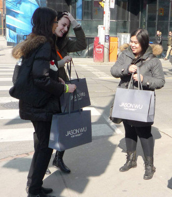 現(xiàn)場(chǎng)工作指導(dǎo)Sue Kuruvilla表示,由此次一日性暫時(shí)服飾店的開(kāi)幕來(lái)看,大多倫多地區(qū)追求時(shí)尚人士對(duì)于吳季剛服飾喜愛(ài)的程度幾近于瘋狂。訂于中午12時(shí)開(kāi)幕的店門口,一大早就有人在外排隊(duì)等候,且雖然全店賣的都是女性的服裝和少量的圍巾、手提袋,但排隊(duì)的人群中不乏有男士前往選購(gòu)給女友或妻子的禮物。